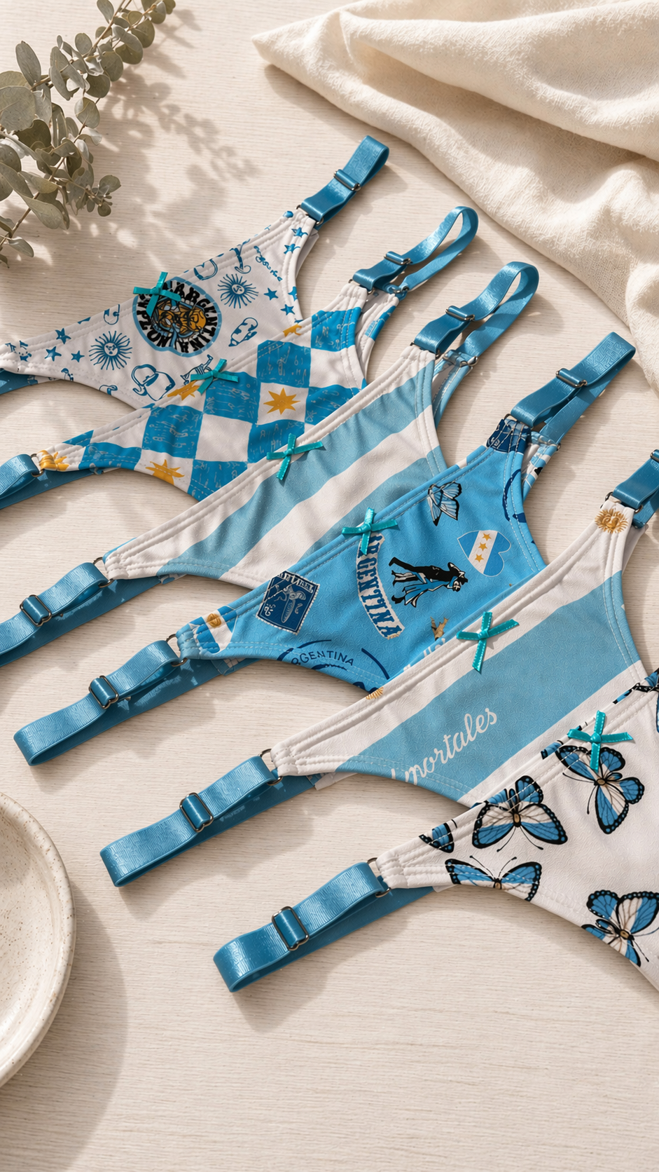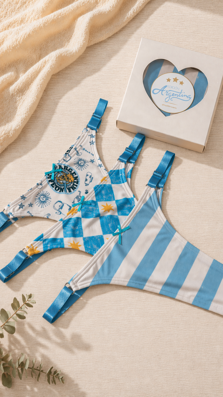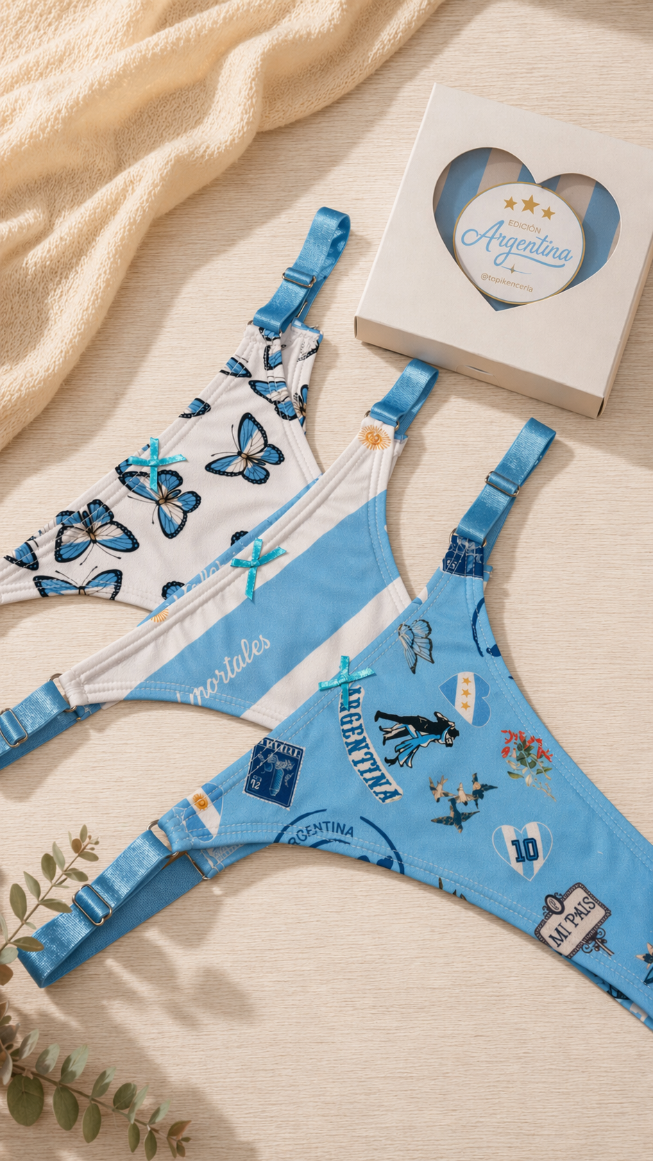 Nuestras tanguis edición Argentina están diseñadas para acompañarte en cada partido con ese mix perfecto entre comodidad, estilo y emoción.Estampas en celeste y blanco, detalles delicados y un calce que se adapta increíble al cuerpo… de esos que elegís todos los días ✨